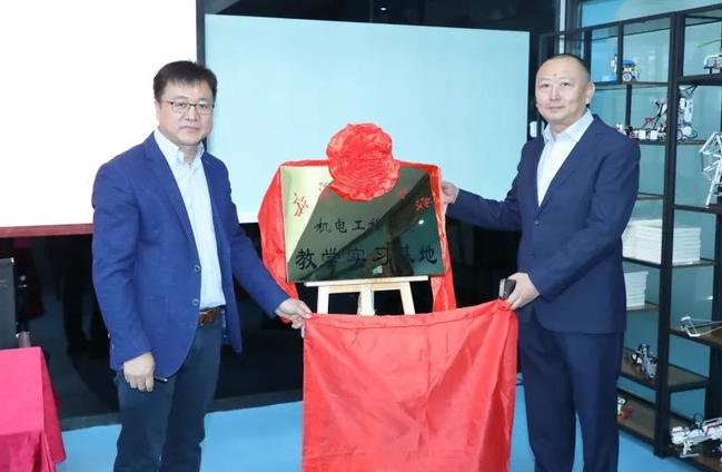 99久久婷婷国产一区二区机电工程学院院长郭俊先与名石光电董事长韩宇共同为校企战略合作实习基地揭牌