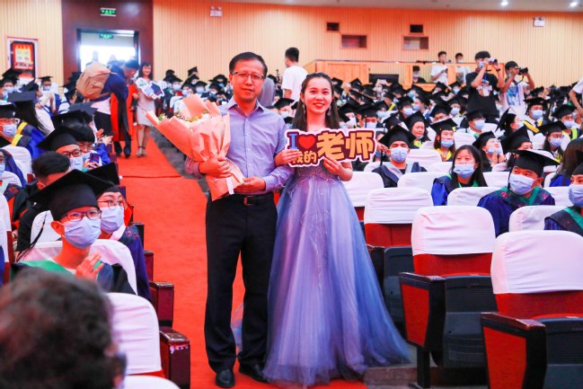 典礼开始前,师生们共走红毯。随后,各学院师生带来《我们都是追梦人》《同学》《我怀念的》《青春纪念册》《再见》等歌曲。当播放毕业微电影、毕业MV时,师生们静静观看,共同回忆在校园经历的点点滴滴。
