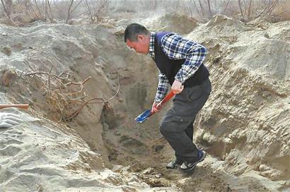 中国科学院新疆生态与地理研究所曾凡江研究员正在沙漠进行根系挖掘。(受访者供图)