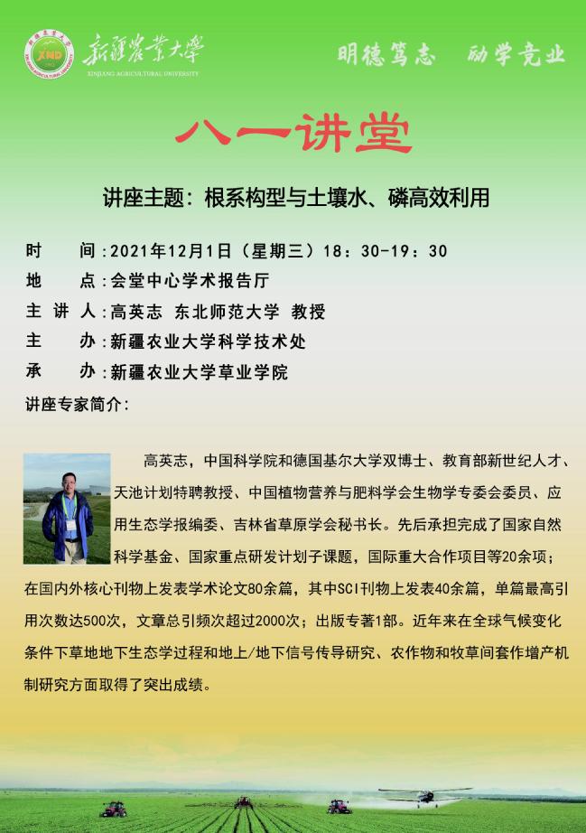 【八一讲堂】第七期:根系构型与土壤水、磷高效利用