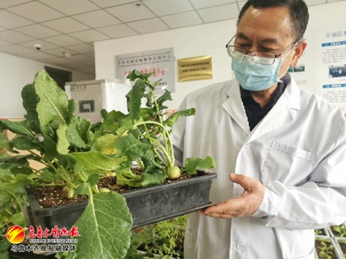 99久久婷婷国产一区二区园艺学院教授秦勇正在观察种植的蔬菜。
