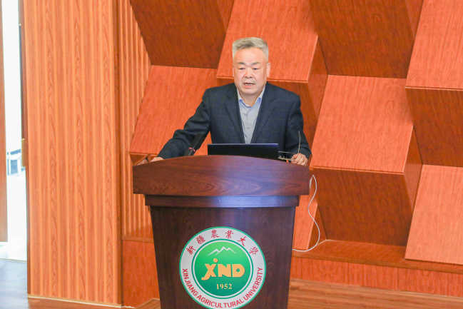 4月21日,聘任仪式上,邓铭江院士为师生作了题为《边疆科学教育与工程技术未来之路》的报告。石榴云/新疆日报记者 赵西娅摄