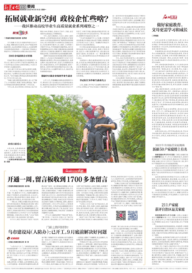 今年以来,我区各高校已举办线上线下招聘会2000多场次,设岗26万余个。目前,全区高校毕业生就业工作顺利推进。