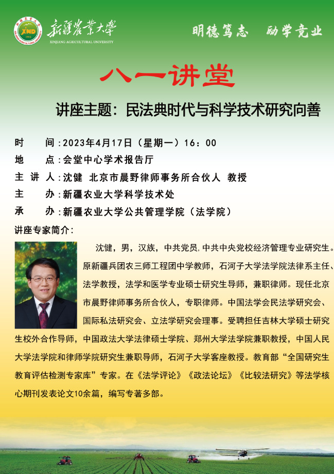 【八一讲堂预告】第二十四期:民法典时代与科学技术研究向善