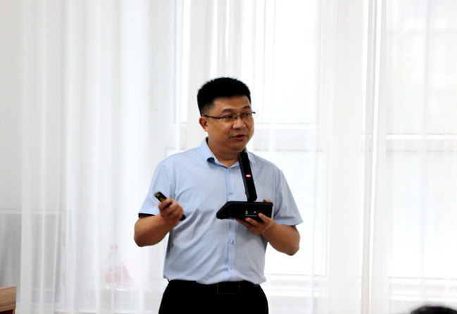 陈超向师生介绍了贵州大学在乡村振兴科技扶贫的背景下,将贵州本地特色畜牧业与专业特色相结合,大力发展草业科学的历史进程,希望今后与草业学院加交流,共同促进草业科学的发展和推广应用。