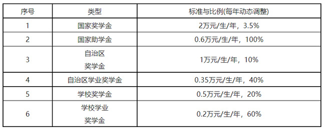 注:评选范围为全日制非定向研究生,且自治区奖学金、学校奖学金不可兼得;自治区学业奖学金、学校学业奖学金不可兼得。具体评选以学校当年通知为准。