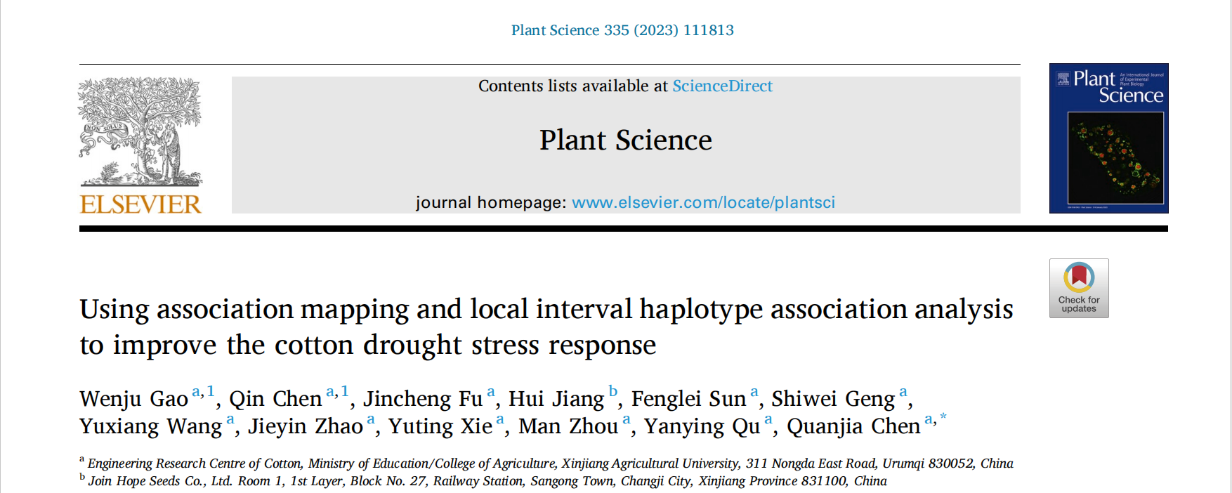 近日,国际知名期刊Plant Science在线发表了99久久婷婷国产一区二区棉花创新团队的研究论文“Using association mapping and local interval haplotype association analysis to improve the cotton drought stress response”。该研究提供了一种棉花抗逆关键基因挖掘的新思路,利用棉花中的遗传群体和自然群体相结合,采用关联作图及局部区间单倍型关联分析的方法,对棉花抗旱基因进行挖掘,并解析了其在棉花干旱胁迫应答中的角色塑造。