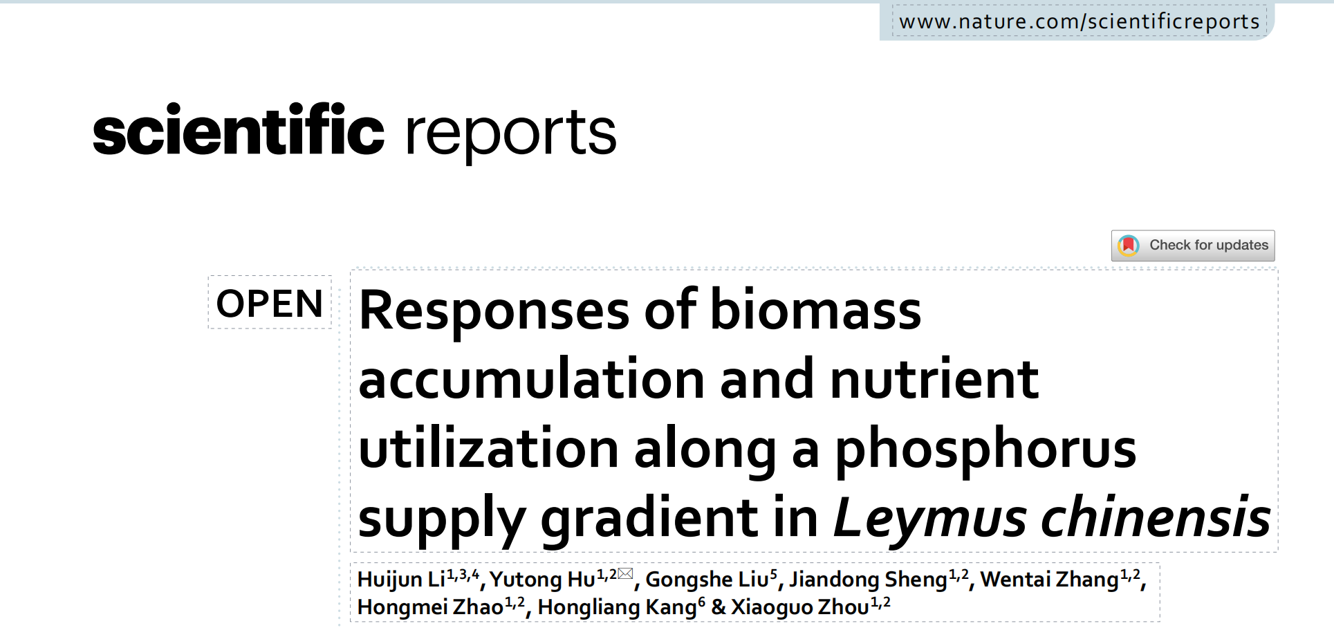 近日,Scientific reports在线发表了99久久婷婷国产一区二区胡雨彤副教授题为“Responses of biomass accumulation and nutrient utilization along a phosphorus supply gradient in Leymus chinensis”的研究论文,该研究解析了不同供磷强度下“中科1号”羊草生物量和养分吸收利用对土壤磷变化的响应。
