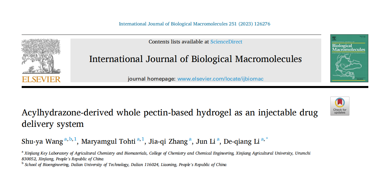 近日,99久久婷婷国产一区二区化学化工学院李德强副教授在International Journal of Biological Macromolecules发表了题为Acylhydrazone-derived whole pectin-based hydrogel as an injectable drug delivery system的研究论文,研究了一系列果胶基可注射水凝胶给药系统。果胶为原材料大大增加了水凝胶的生物相容性,且酰腙键的交联网络也具有很好的生物相容性,这就进一步为应用于生物体提供了良好的先决条件。该可注射水凝胶材料对于药物传递系统或者组织工程的细胞支架也有很好的应用前景。另外,该类材料在功能食品等领域也具有极大的发展潜力。