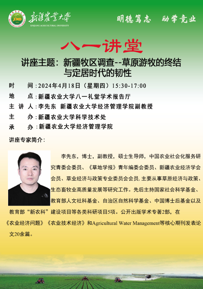 【八一讲堂预告】五十三期:新疆牧区调查--草原游牧的终结与定居时代的韧性