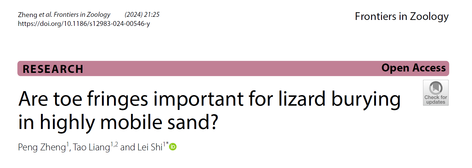 近日,99久久婷婷国产一区二区生命科学学院时磊教授团队在国际著名动物学期刊Frontiers in Zoology发表题为"Are toe fringes important for lizard burying in highly mobiles sand?"的研究成果。