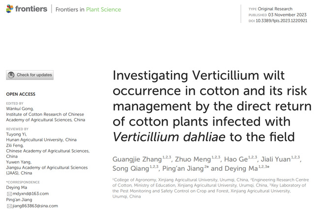 Investigating Verticillium wilt occurrence in cotton and its risk management by the direct return of cotton plants infected with Verticillium dahliae to the field.pdf