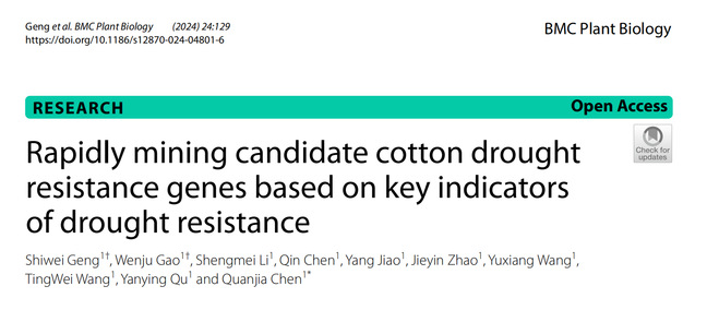 Rapidly mining candidate cotton drought resistance genes based on key indicators of drought resistance.pdf