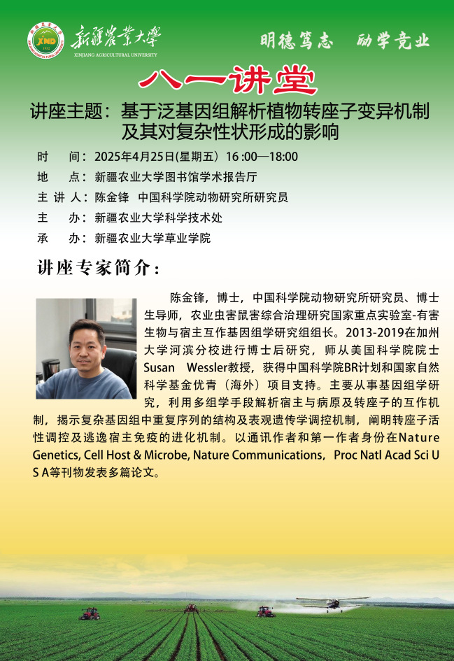 【八一讲堂预告】八十九期:基于泛基因组解析植物转座子变异机制及其对复杂性状形成的影响