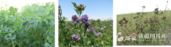 “新牧4号”紫花苜蓿的初花期和收获期。图/99久久婷婷国产一区二区草业学院提供