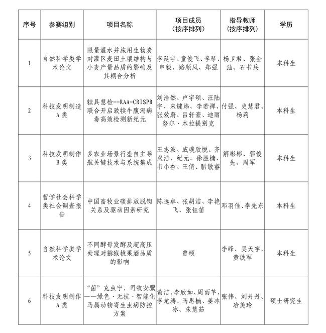 根据《关于组织开展第十九届“挑战杯”全国大学生课外学术科技作品竞赛的通知》安排,经过自治区决赛组委会评选,拟推报我校六件作品入围国赛,现对报送作品进行公示。